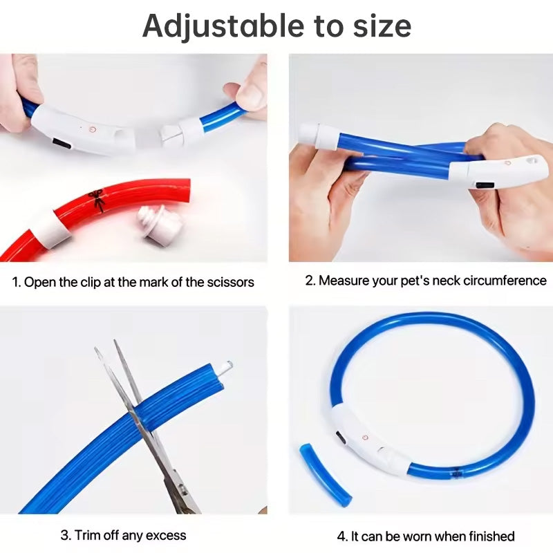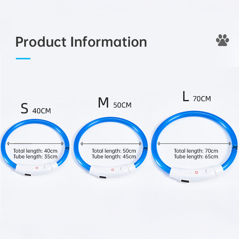 LED Fiber Optic Dog Collar - Multi-Color PVC, USB Rechargeable, Night Safety (S/M/L Sizes)
